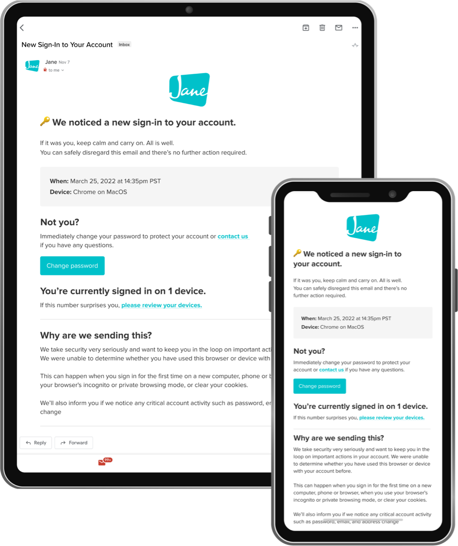 While Jane has an entire team that dedicates 100% of their time to prioritizing your patients' privacy and the security of your data, our entire company is trained on best practices — and builds them into our everyday tasks