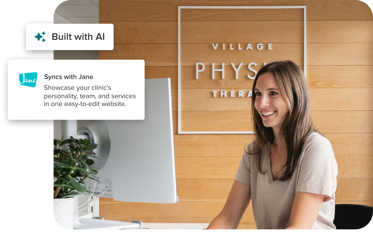 Jane makes it easy to build and maintain your clinic's website with our AI website builder. Your Jane account connects directly to your website, automatically syncing your logo, branding, services, and staff bios from your Online Booking page each day.